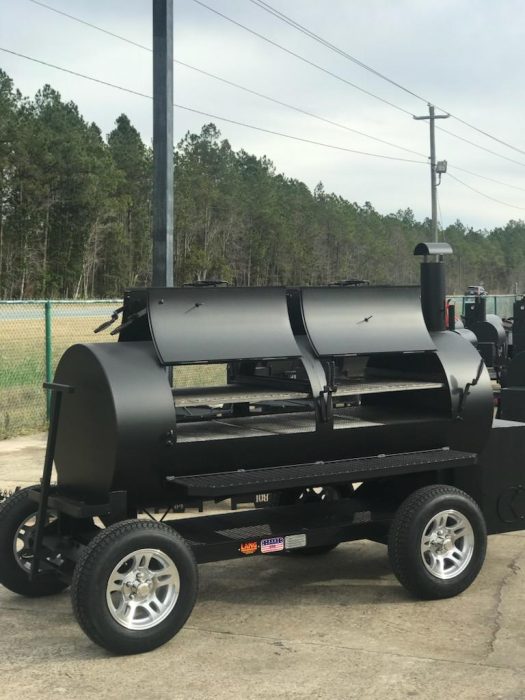 Competitive Smoker Cooker on Swivel Wagon Wheel Cart Frame. Our largest series, excellent for onsite or on location catering and commercial use.